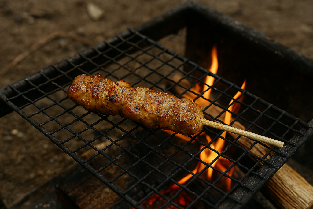 1. 焼き鳥を串のまま網にのせて軽く炙る
