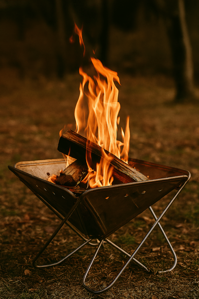 スノーピークの代名詞とも言える焚火台。Mサイズはソロキャンプにちょうど良く、薪の組み方次第で炎の表情が変わる。設営・撤収が簡単で、地面を傷めない設計も嬉しいポイント。
