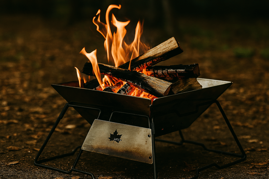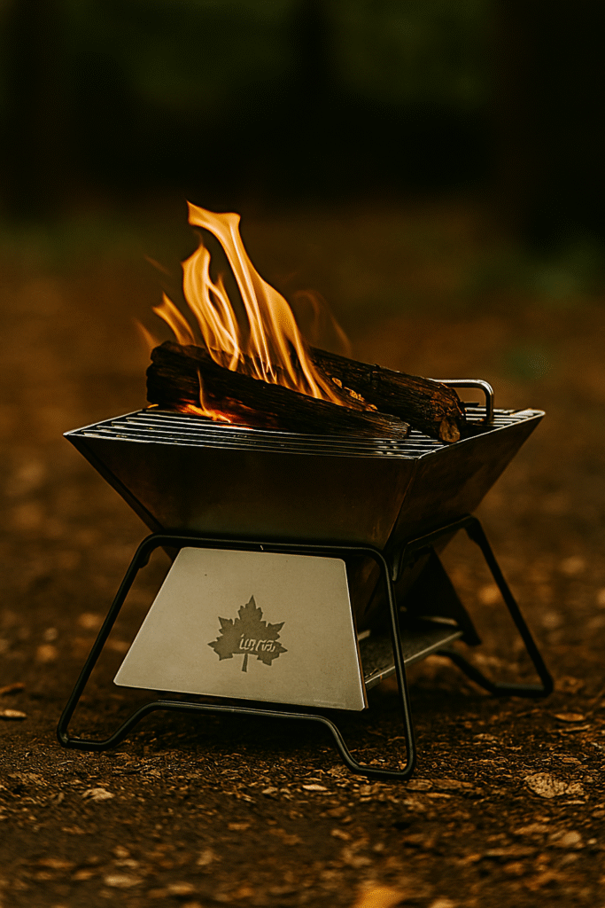 焚き火と調理を両立できるコンパクトグリル。ソロキャンプにぴったりなサイズで、焼き物や湯沸かしにも対応。収納性も高く、持ち運びもラク。