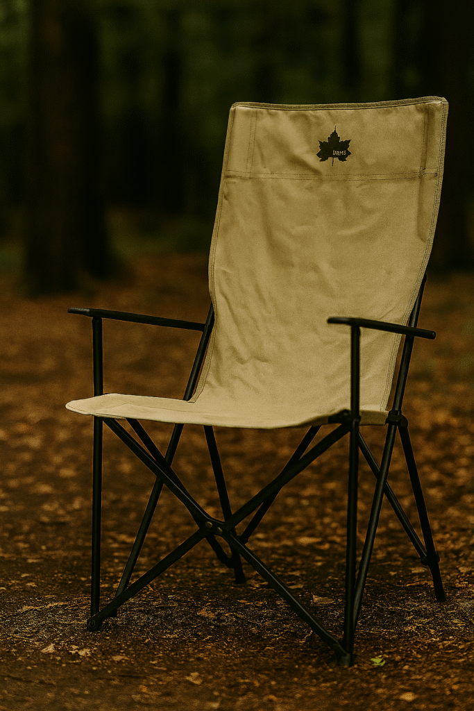 背もたれが高く、長時間座っても疲れにくい設計。焚き火を眺めながらゆったり過ごす時間に最適。折りたたみ式で収納もコンパクト。