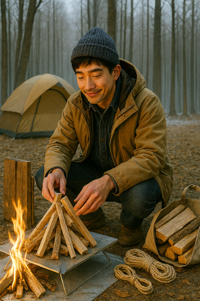 • 着火剤は多めに持参:冷えた薪は着火しにくいため、固形燃料や麻ひもなどを活用。
