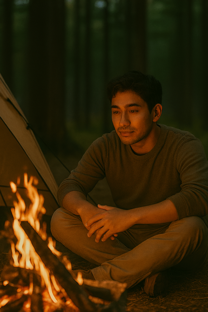 焚火を見つめながら、ふと浮かぶのは「今の働き方でいいのか」「本当にやりたいことは何だったか」といった問い。